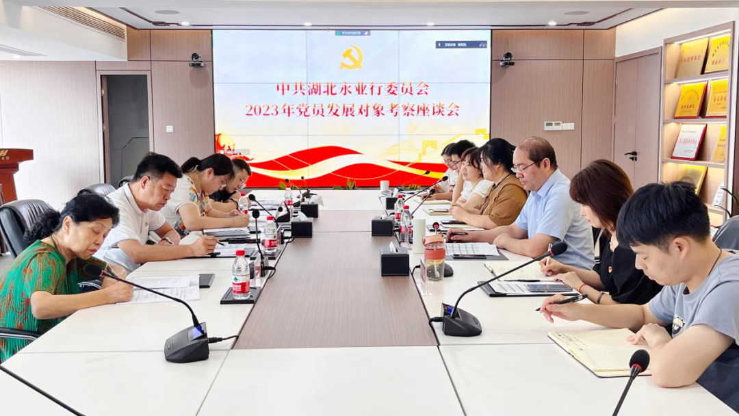 2023年9月6日,武昌区委统战部副部长、区工商联党组书记、会员企业党委书记吕志新,武昌区工商联副主席王琦,会员企业党委全职党建指导员李祖豪,专职党建指导员郭群一行莅临永业行,对5名党员发展对象进行座谈考察。永业行党委委员、常务副总裁吴学锋,组织人事部总经理李斯,各支部党员发展对象及党员群众代表参加座谈。 吴学锋首先向区工商联领导介绍了党员发展对象的基本情况,随后各位座谈代表依次对5名党员发展对象的政治素养、工作表现、学习提升、生活作风等方面进行了简要介绍,全方位的评价了各发展对象的整理情况。区工商联领导与5名发展对象进行谈话,并提出了三点希望:一是严
