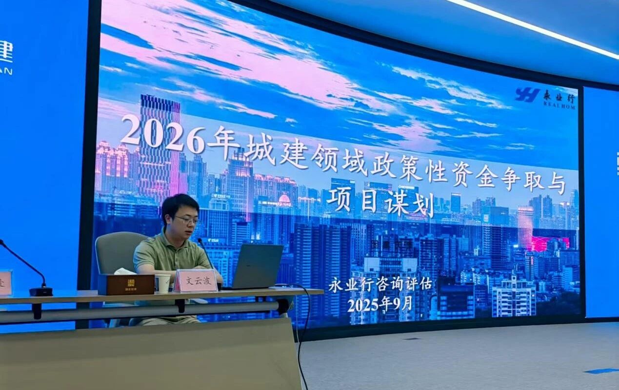 2025年9月5日,湖北省住房和城乡建设厅组织召开2026年城建计划编制及中央资金支持项目谋划争取工作视频培训。永业行常务副总裁文云波受邀作《2026年城建领域政策性资金争取与项目谋划》培训交流。